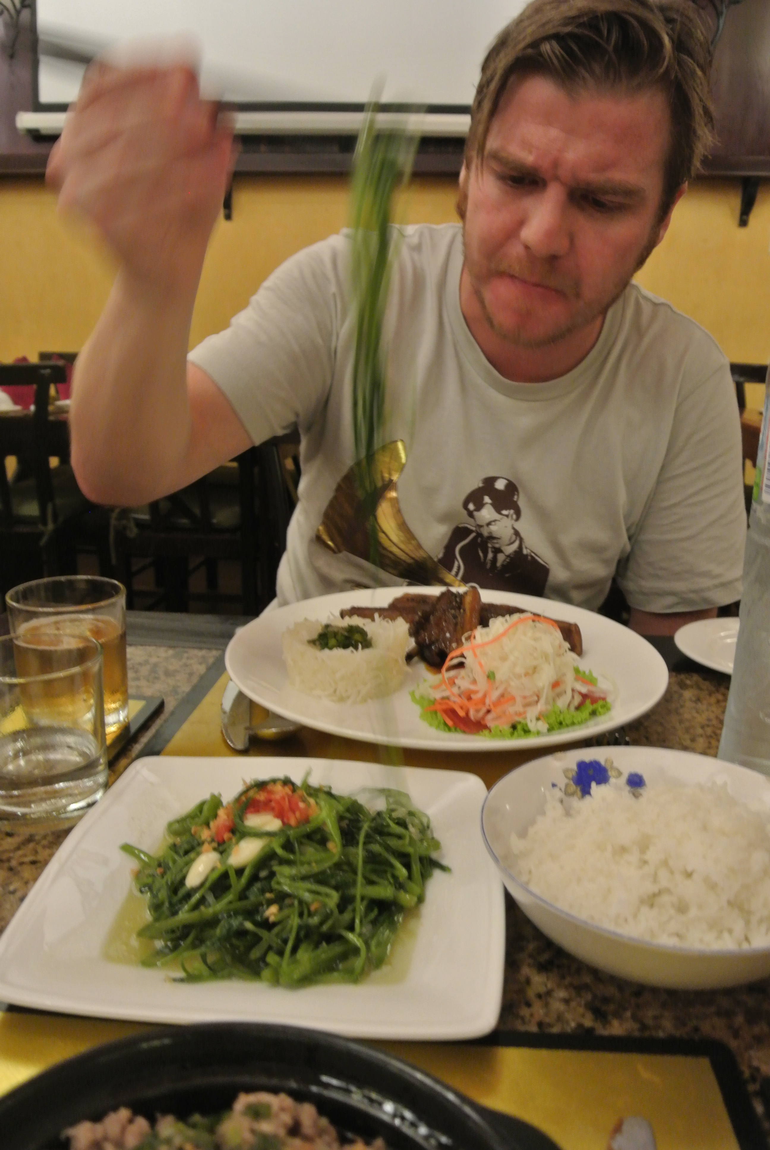 During our 3 week holiday I ate some of the most exquisite food in the world, and for me this is up there with the best. Rich deep meaty Pho (a soup usually eaten for Breakfast – full of lemongrass, chilli and coriander) plates of seafood freshly cooked and delicately spiced with chilli and lime, amazing vegetables such as Morning Glory (tee-hee) and wonderful fresh Spring rolls it was all so great.