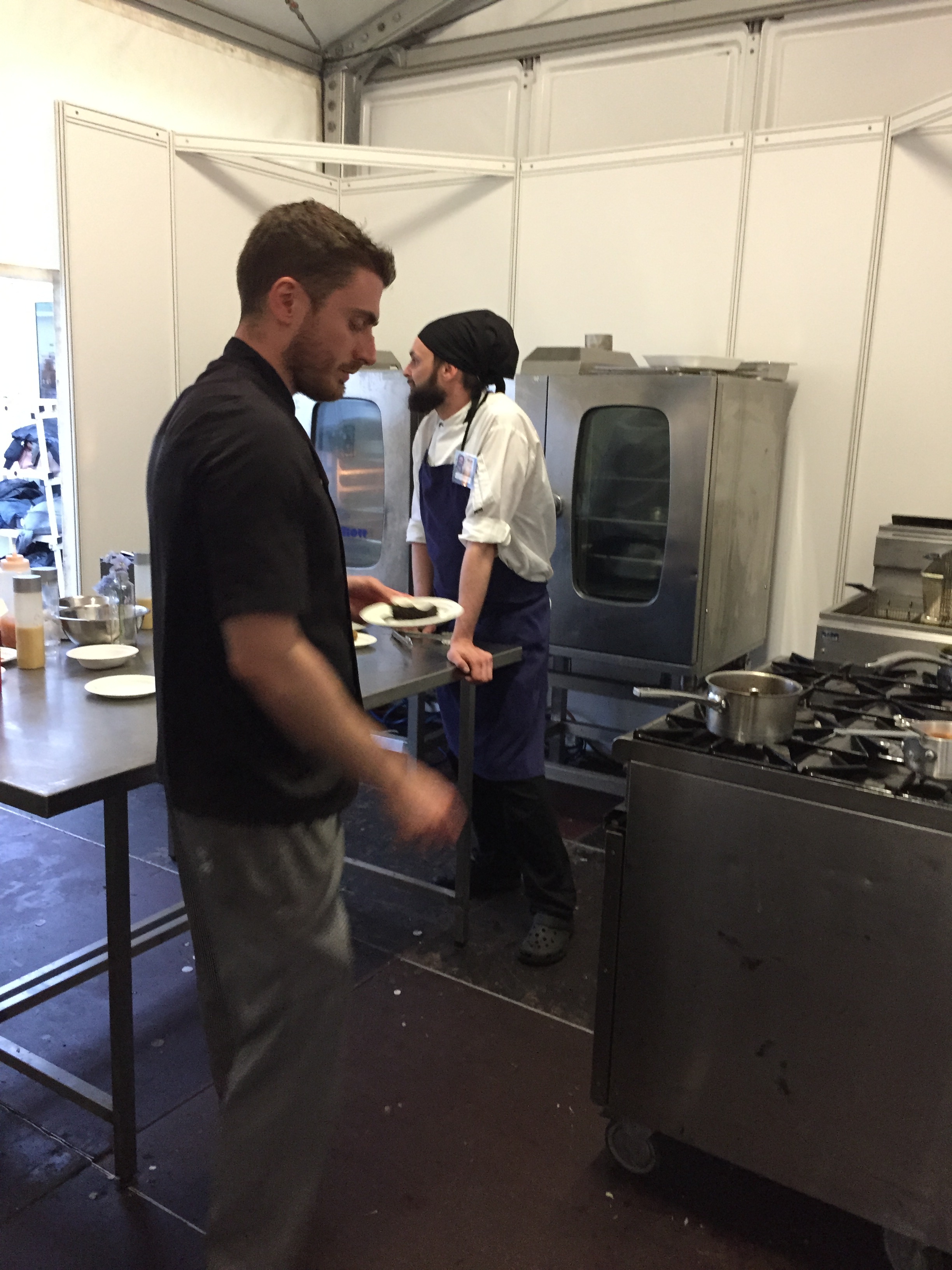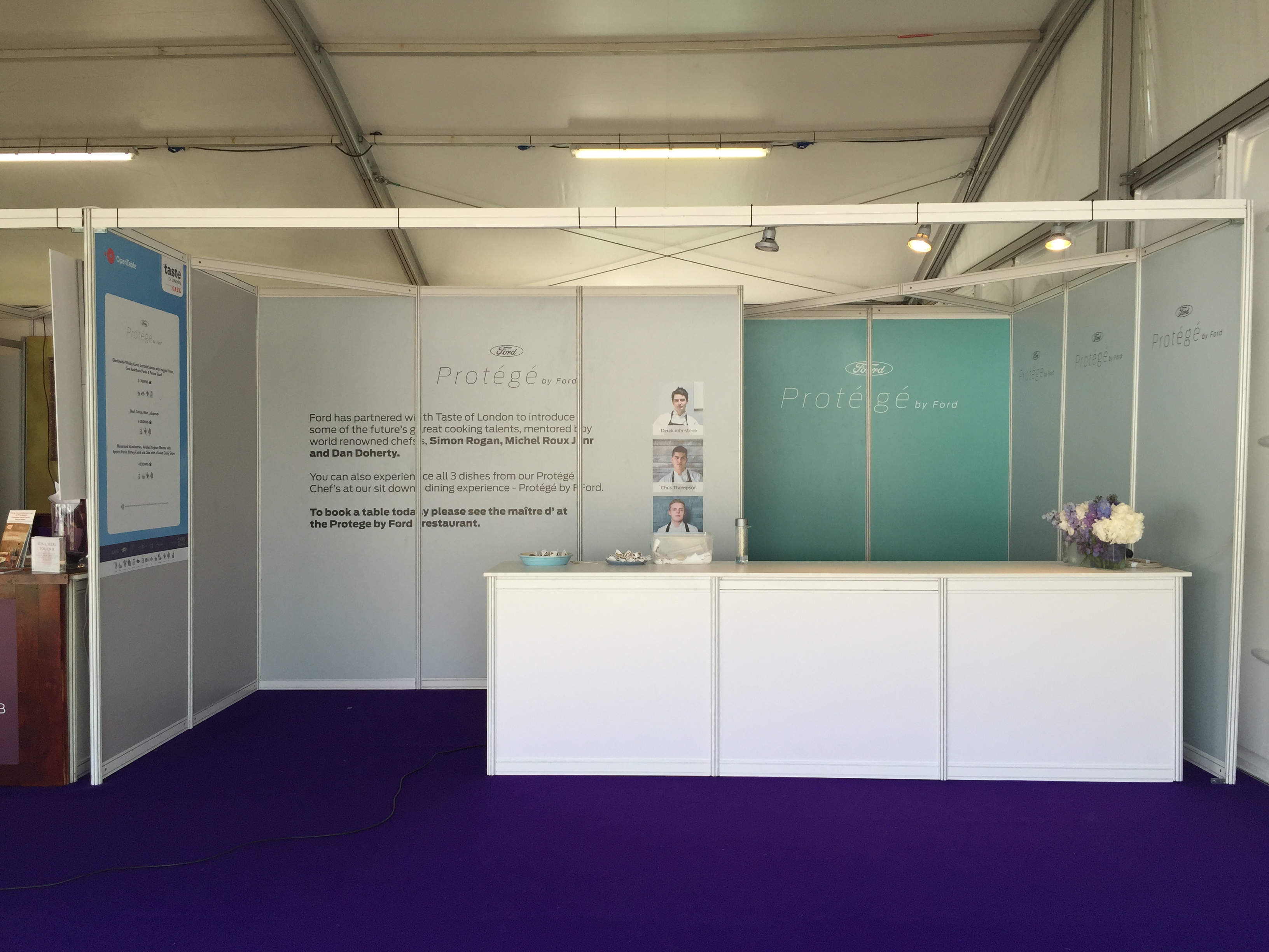 The stall we were working on was the culmination of a partnership between Ford (yes the cars) and Taste of London to promote 3 up and coming young chefs. This initiative was called Protege by Ford. These 3 young lads were mentored by top chefs and had created a dish each that we were selling in our little stall, alongside this the guys were also running a pop up restaurant next door