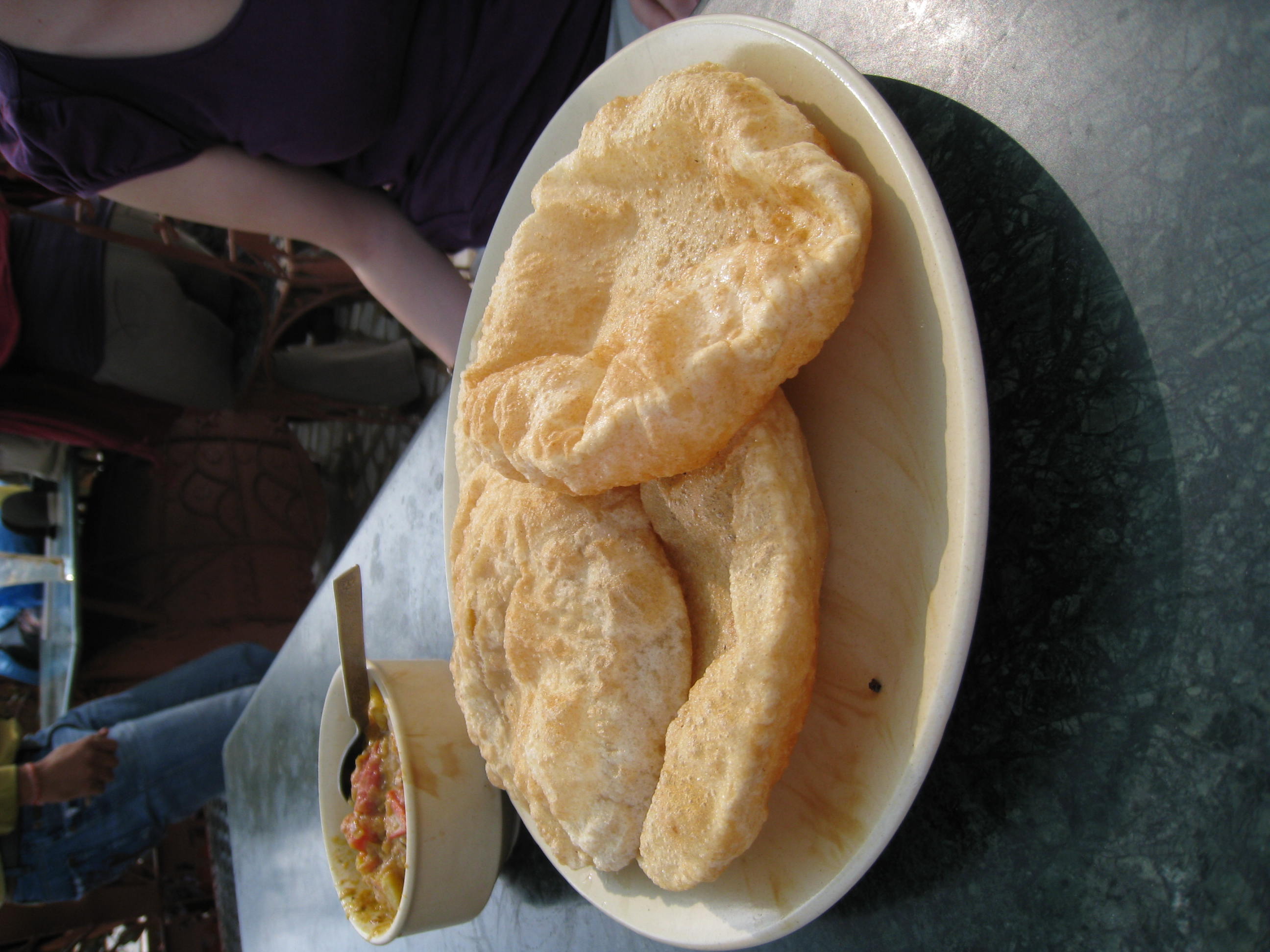 This was a pretty classic breakfast in India, some mild potato curry in the dish served with some light and fluffy bread – washed down with a massala chai – absolute winner!