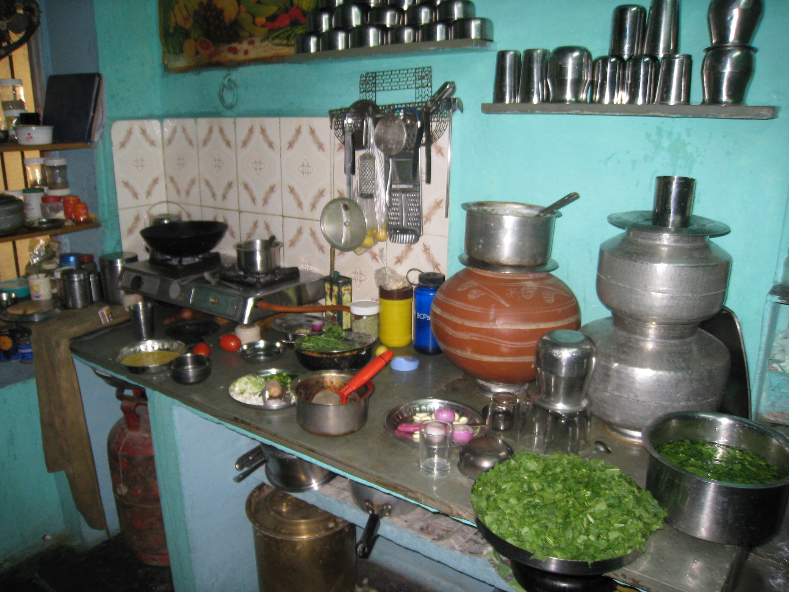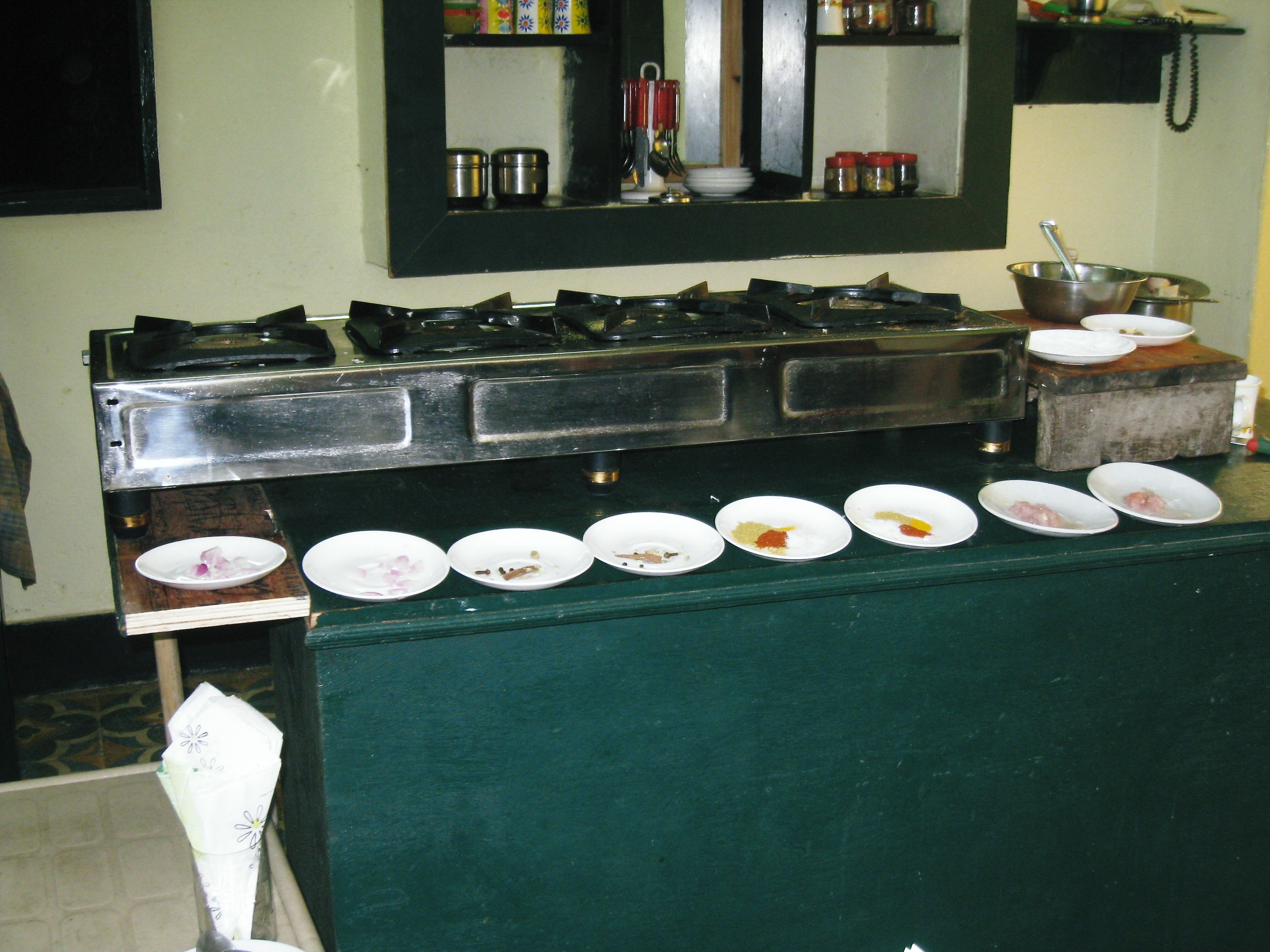 Our first cooking course was in a local woman’s kitchen in Udaipur (the place with the floating palace as seen in Octopussy). A fantastic opportuninty to see inside a kitchen and learn some wonderful Indian dishes (that I am still yet to try back home – shocking!)