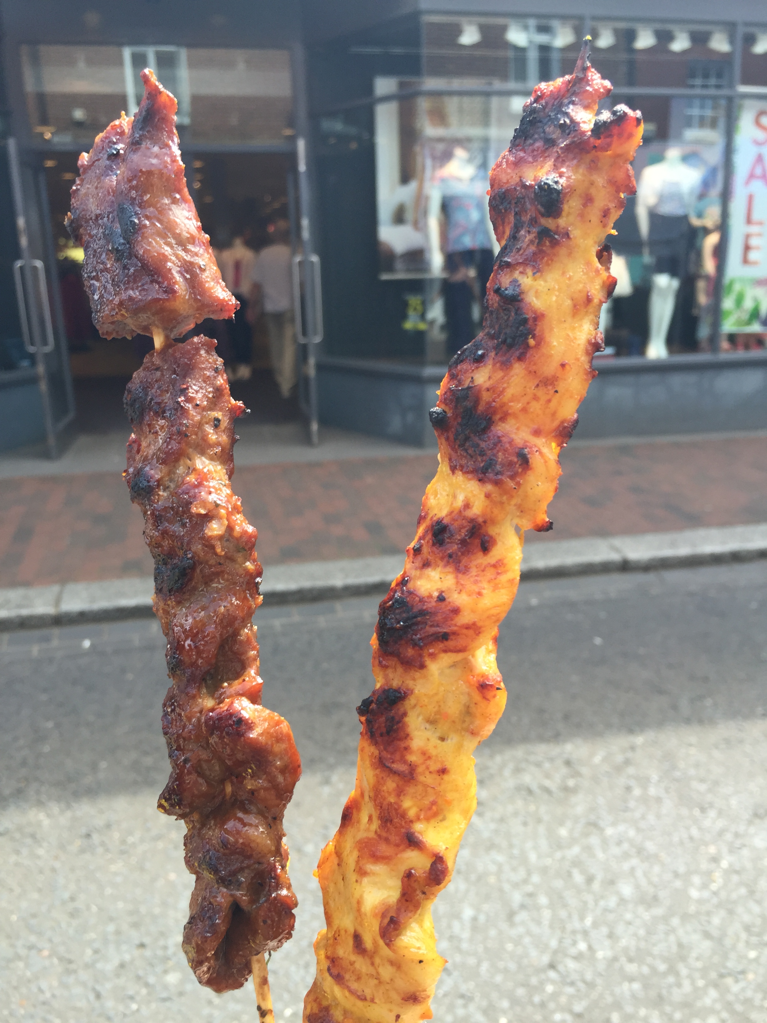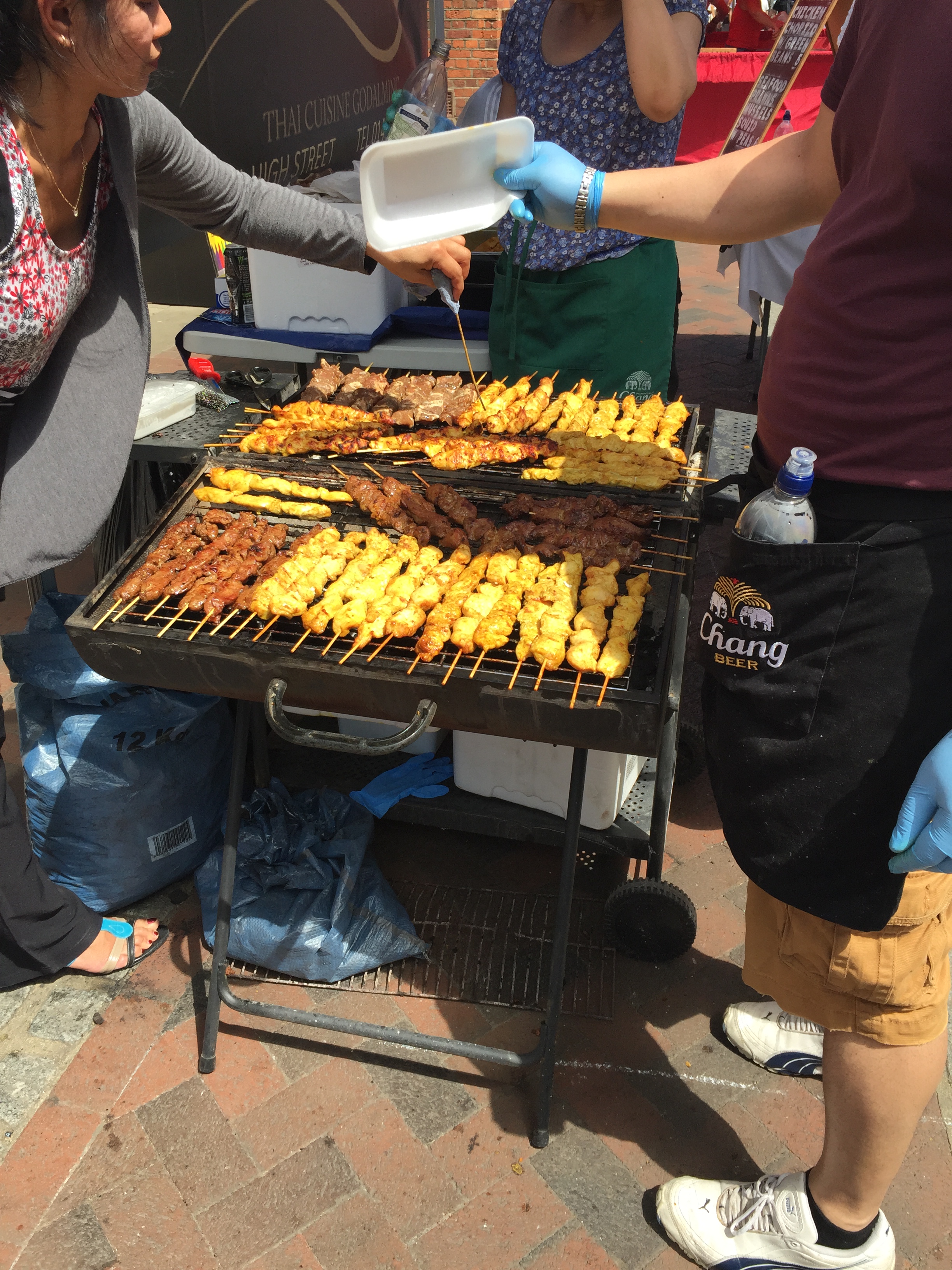 I took on a Bratwurst, a couple of freshly BBQ’ed skewers with Satay sauce and a very disappointing giant Arrancini ball, which was too dry to eat,
