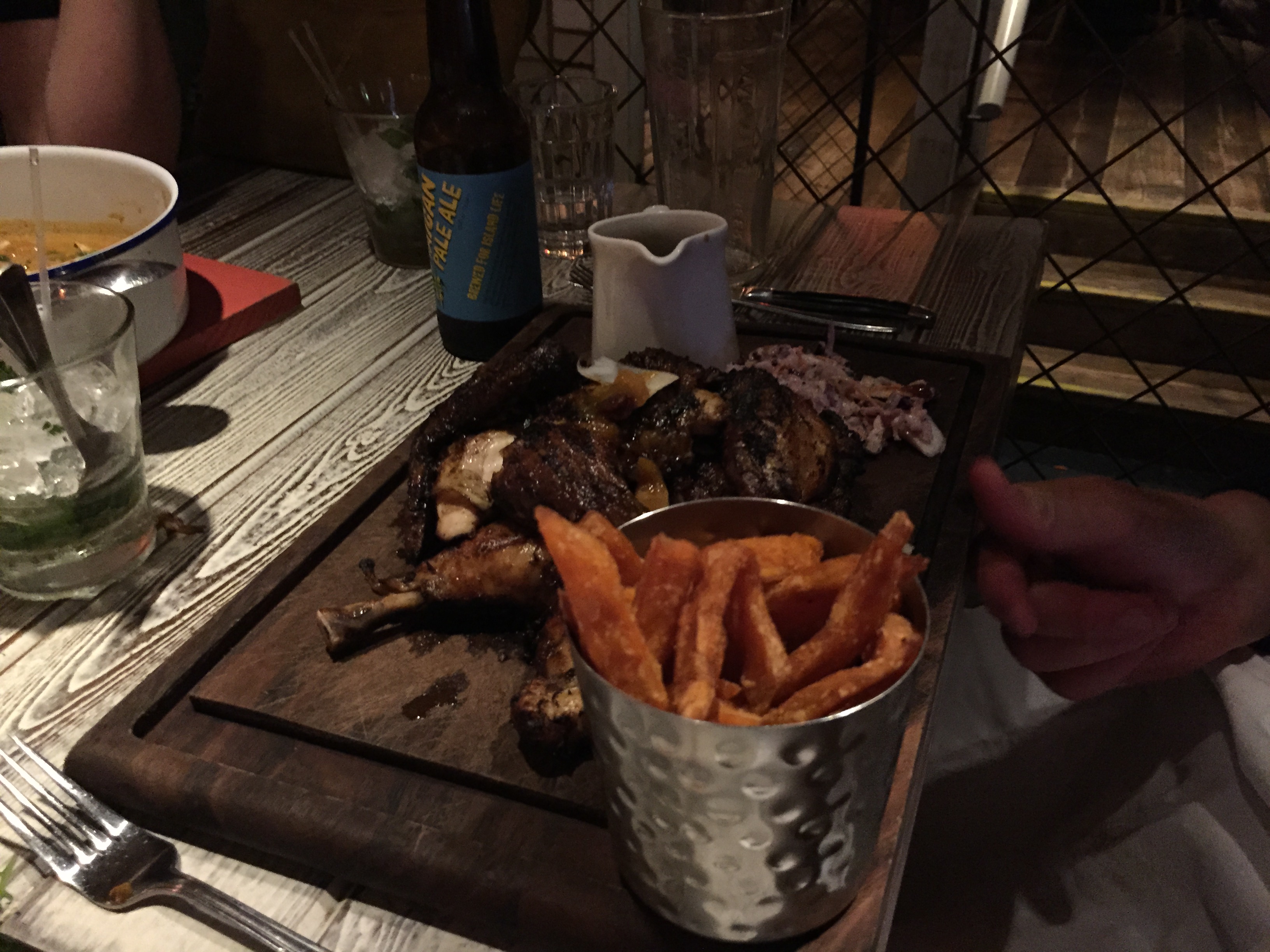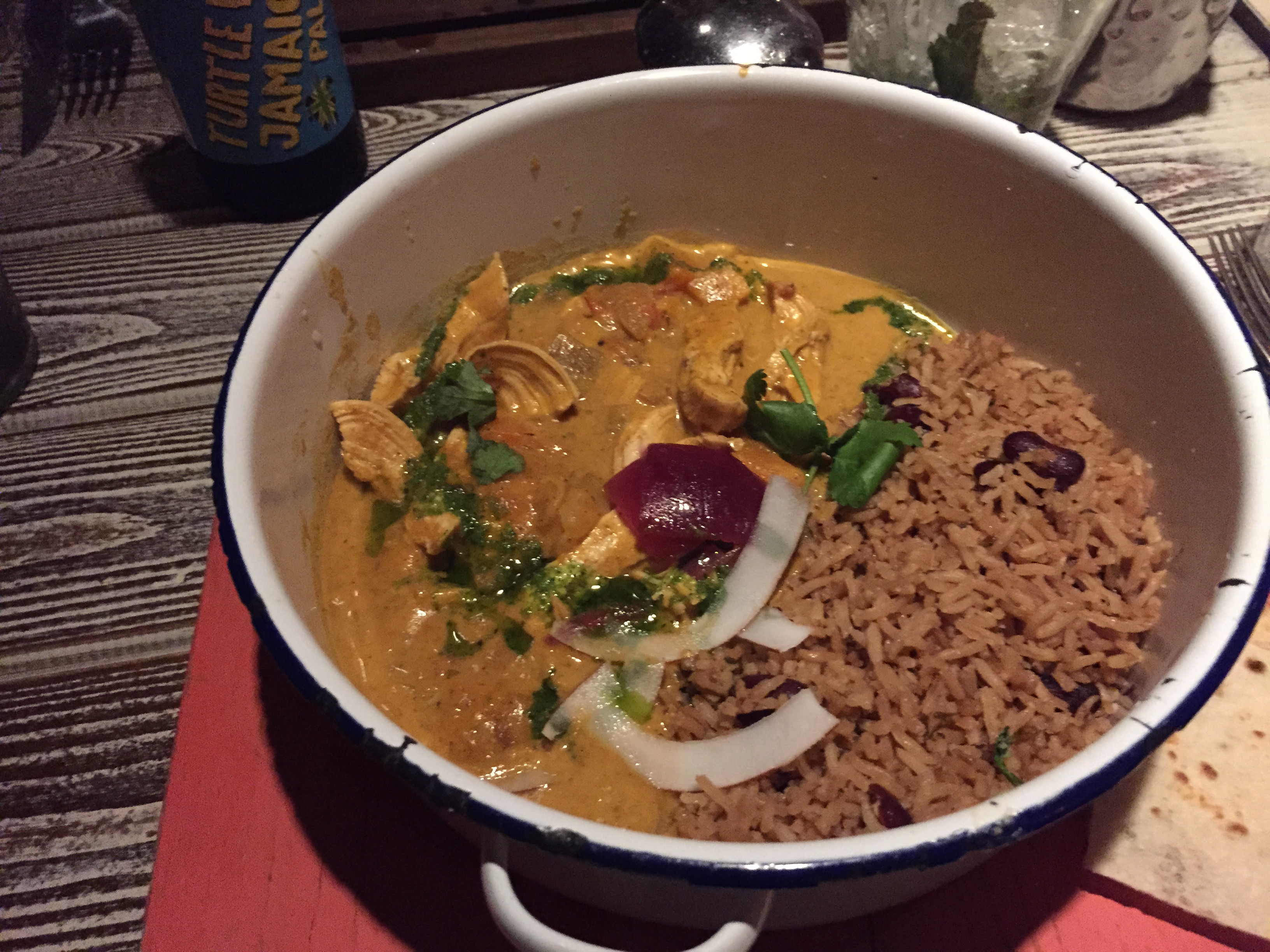 For main I split a whole Jerk Chicken (a bargain at about 15 quid!) and the curried goat, which I had had a few times at Notting Hill Carnival.