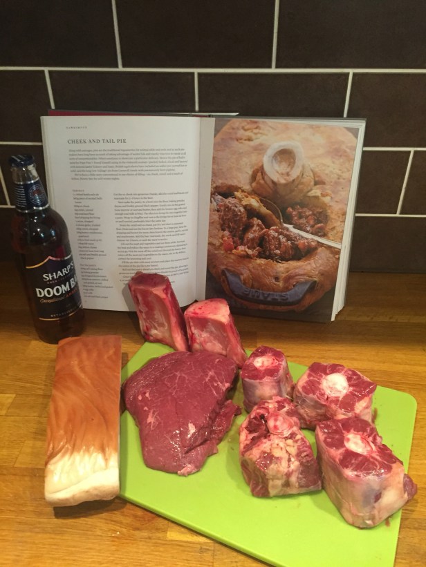 I was perusing the guardian food section last week online (as you do) and came across a nice article on the A-Z of winter food . Under P there was a fantastic looking pie called the cheek and tail pie. On closer inspection I saw that this was out of the Hawksmoor at Home book that some friends had given me last year. As I am into making pies at the moment, and had my mum and stepfather coming for dinner the following week I saw this as a sign from above (maybe!) and decided to make this amazing pie.