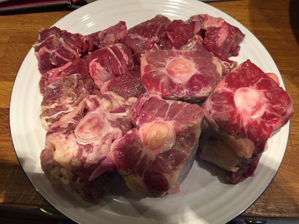 As always the meat looked fantastic (I have never been let down by the butcher yet). The cheek was intensely red in colour and had a very strong iron smell almost like game. It was tough as old boots, but with a few hours cooking I knew this would be tender and have a wonderful rich beefy taste. The bacon looked and smelt amazing, really smoky – so much better buying big pieces than small rashers, and the oxtail as always just looked a bit weird!