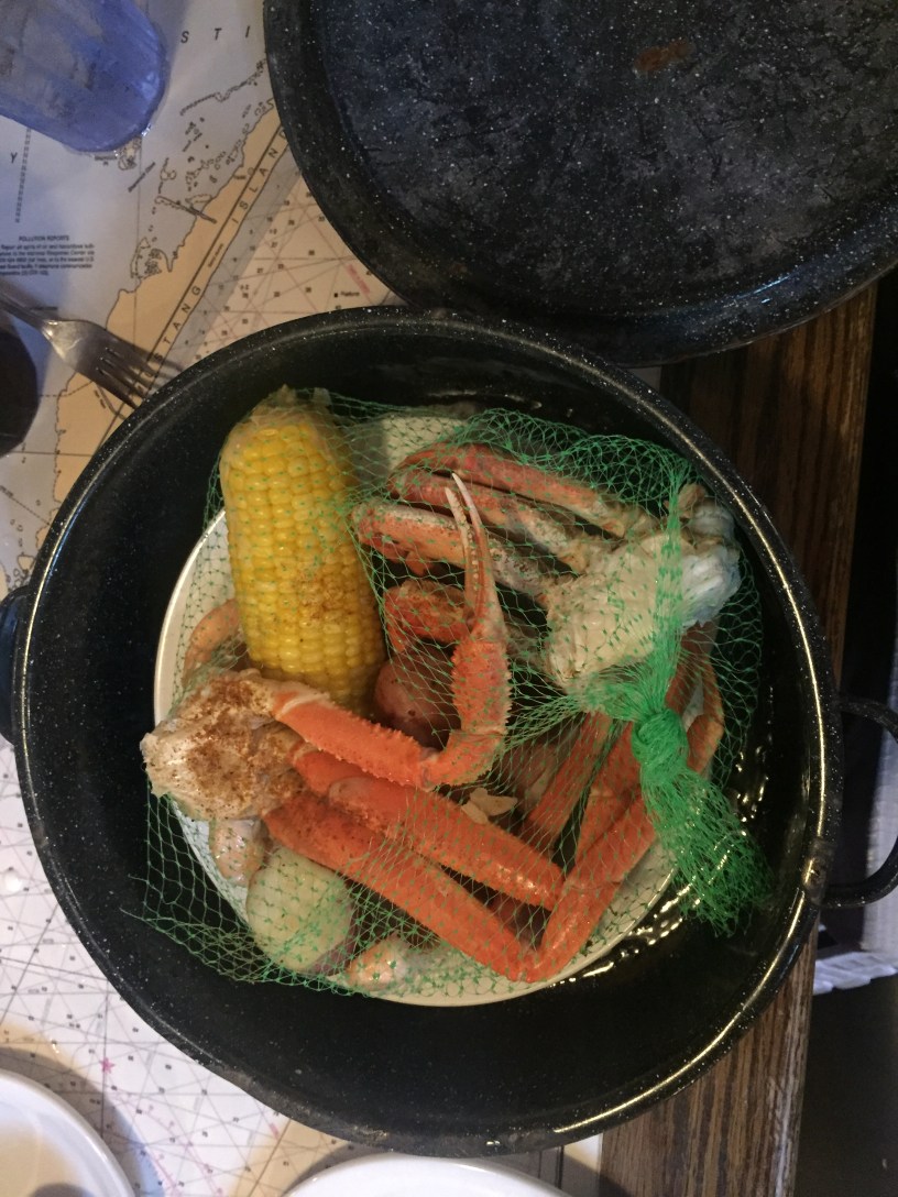 I had some pretty kick-ass seafood from Joe’s crab shack. I had one of their classic steampots – half a snow crab, half a dungeness crab, shrimp and sausage – with the obligatory bib of course!